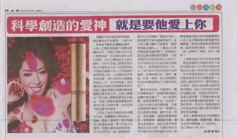 > 就是要他愛上妳-第六感人類費洛蒙-聯合報